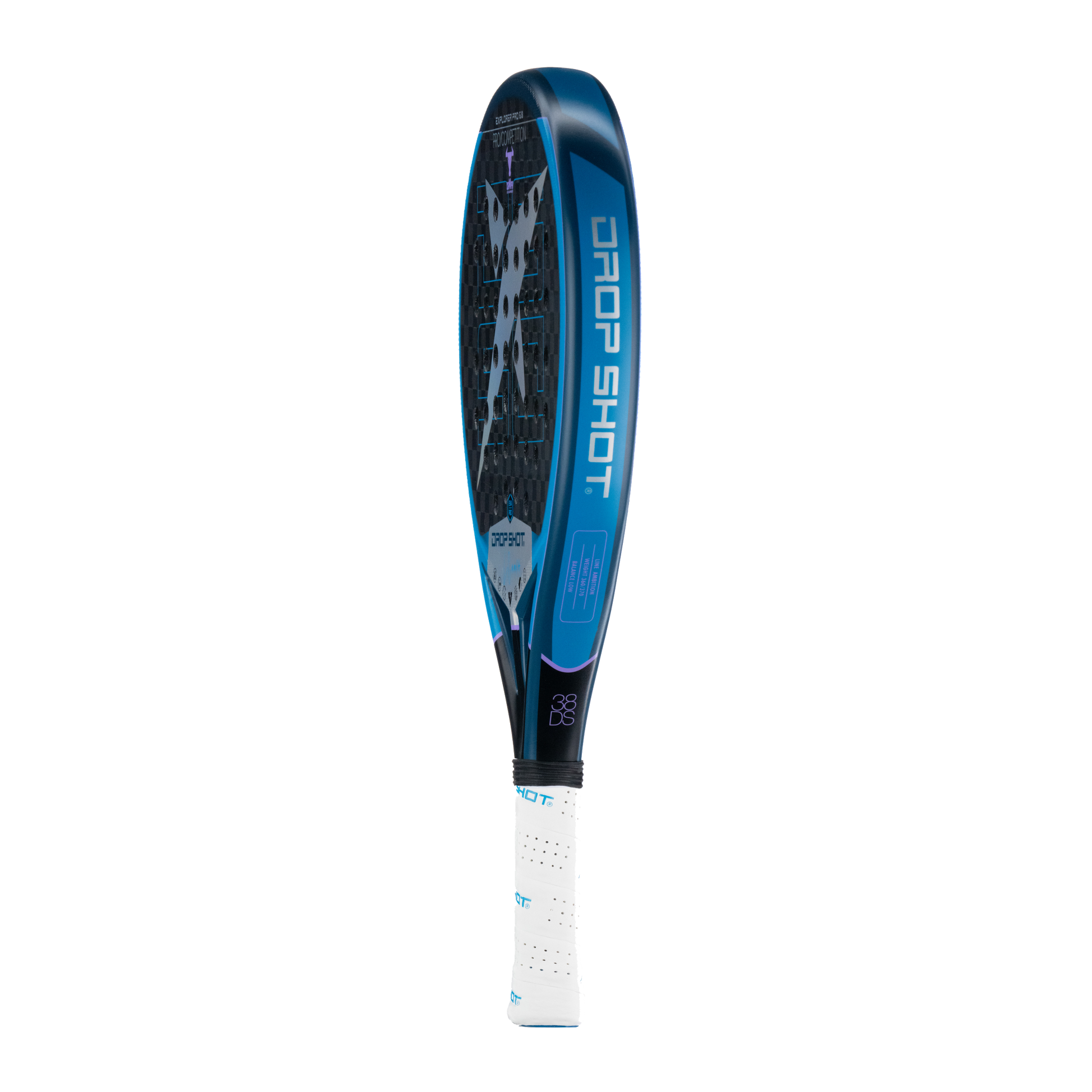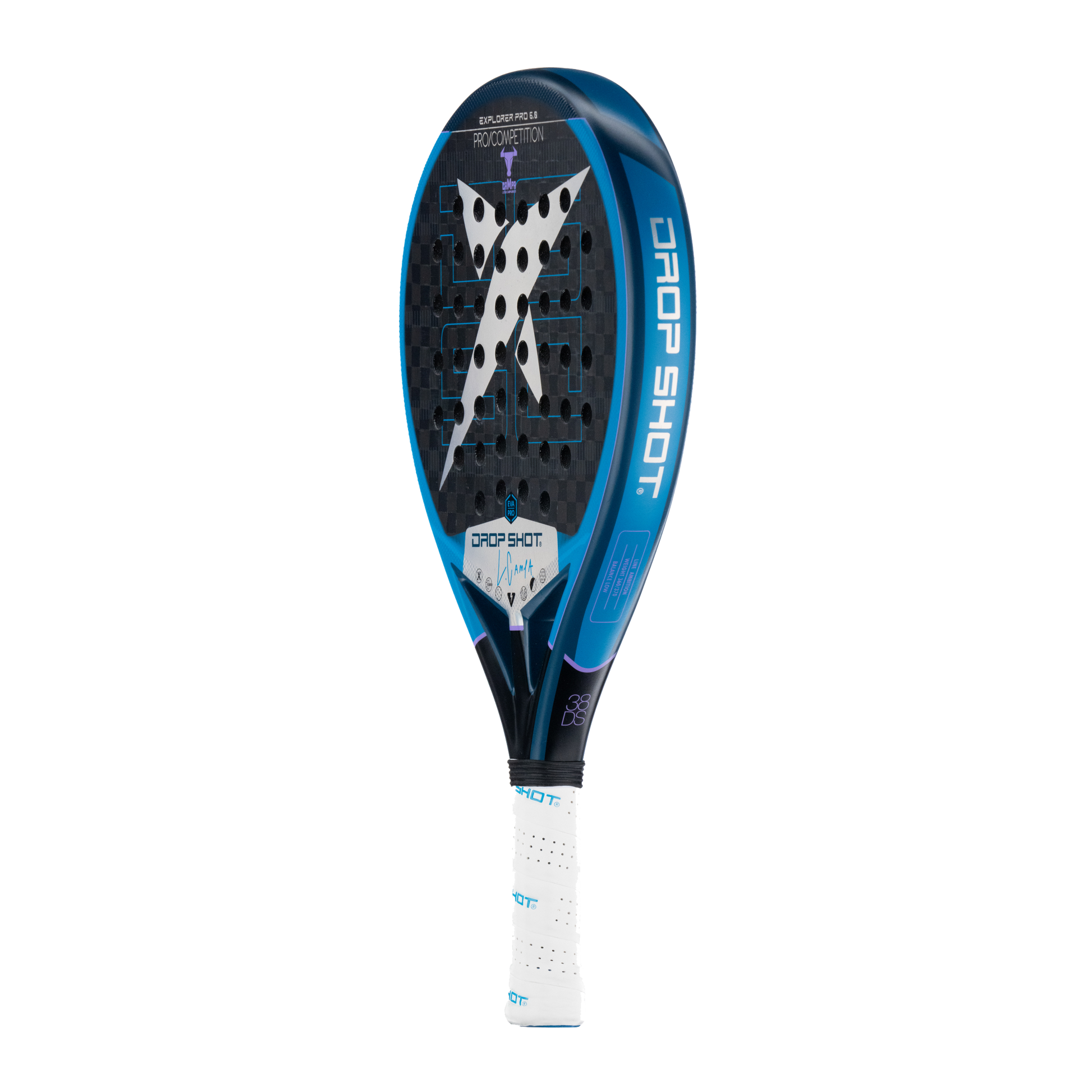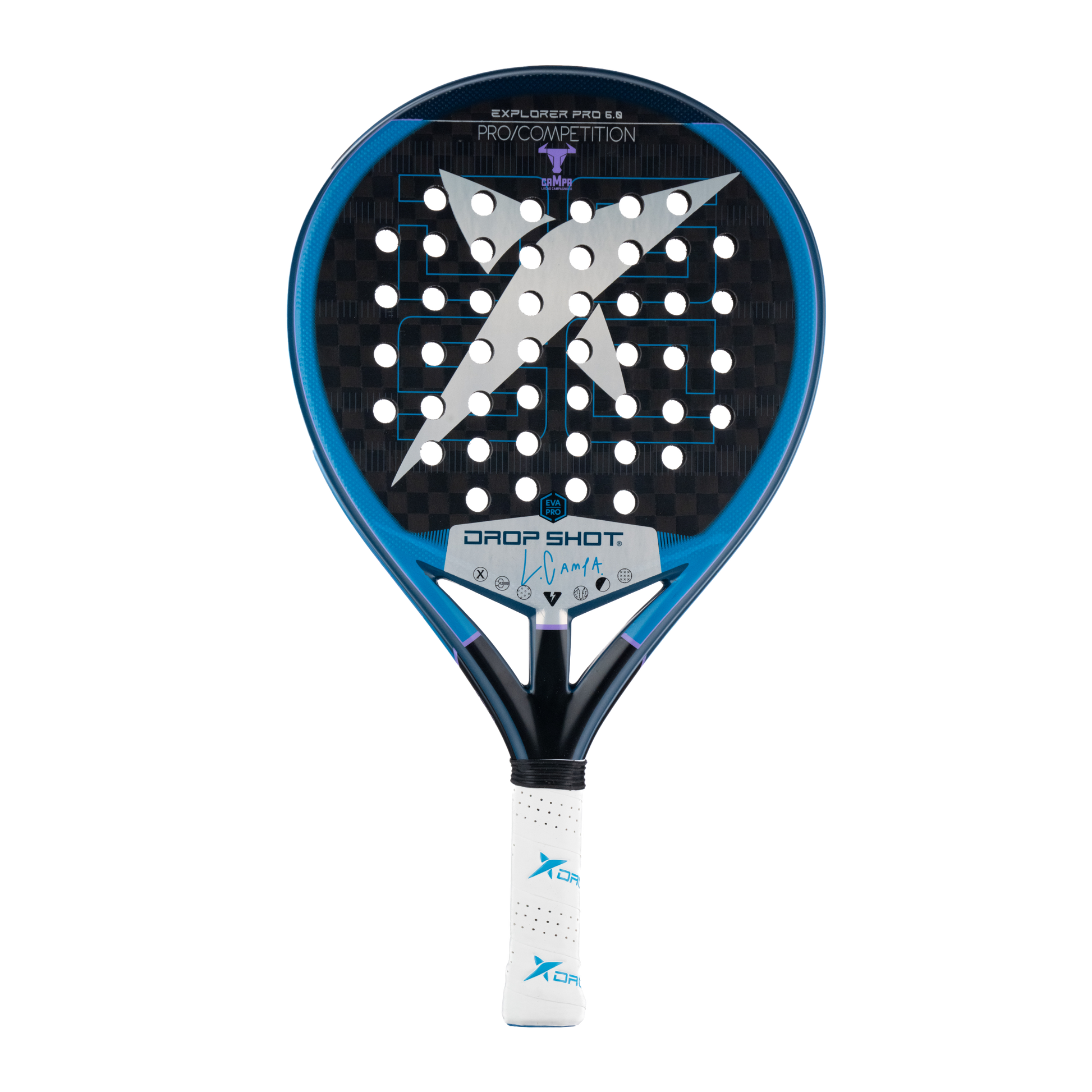 The model of our player Lucas Campagnolo, relegated to a lower range. The Explorer Pro 6.0 is intended for advanced to high-level players. It is composed of 12K Carbon; to make the faces of high-end paddles, thus achieving excellent playability and extra resistance. From its design, we can highlight the details in blue tones that give it a unique personality. The paddle features Campa's logo in a discreet lilac tone on the upper central part.